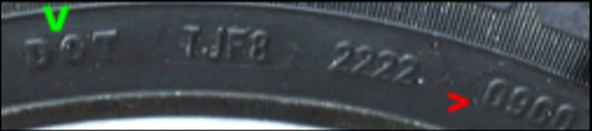 Auf dem Bild unten ist die Zahl 0900 zu erkennen. Dies bedeutet, dass der Reifen in der 9. Woche des Jahres 2000 hergestellt wurde.